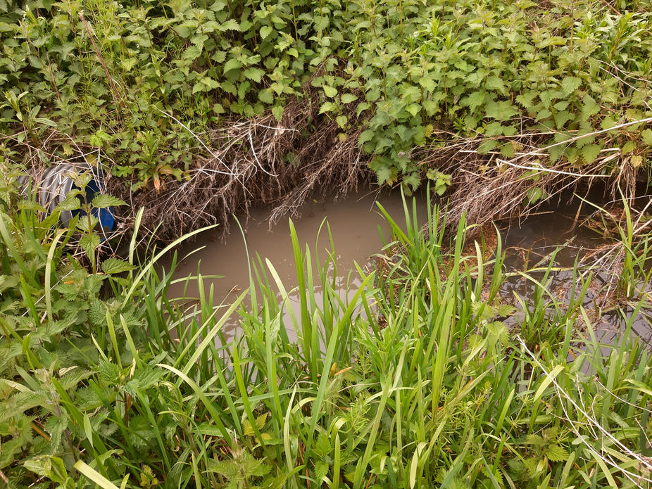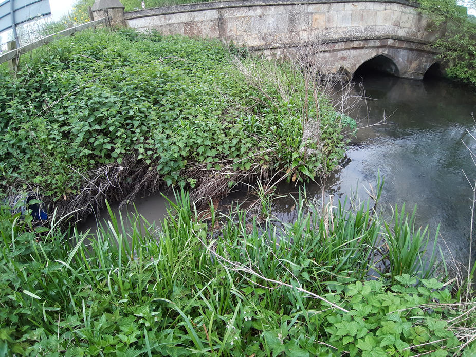 It was all looking great and then I came across this pipe feeding a short ditch to the river just before the bridge carrying the main road. It is on the left and you can see what is probably road run off with whatever that brings from the hundreds of thousands of cars and lorries that pass that way. It was a nasty colour and billowed grey clouds as it mixed with the clear stream