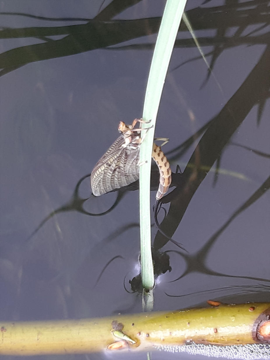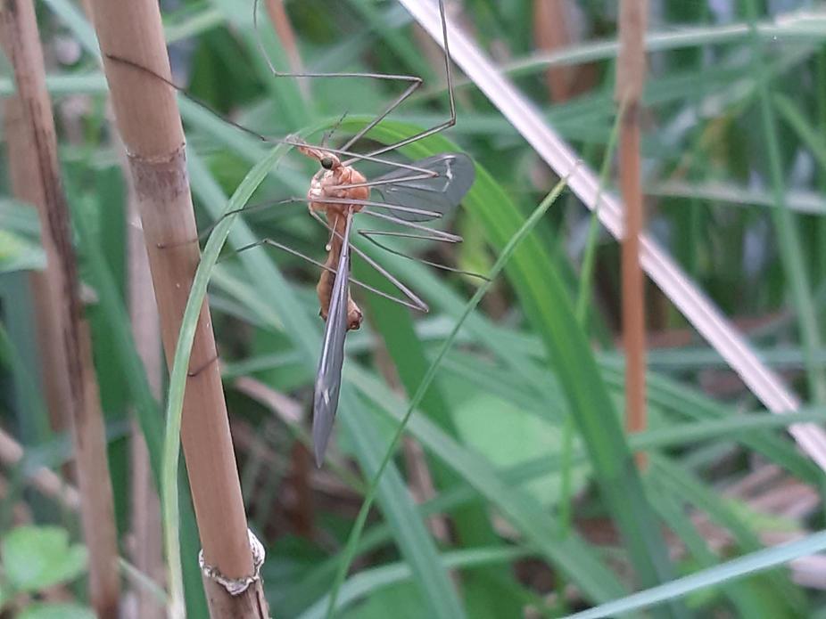 A crane fly showed itself, hatched maybe from the water, maybe land. Any experts out there might know about this particular species of the big family.