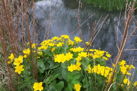 Two mallards were taking their food from the weedbeds as we walked down the path following the straight cut channel, set out many years ago.