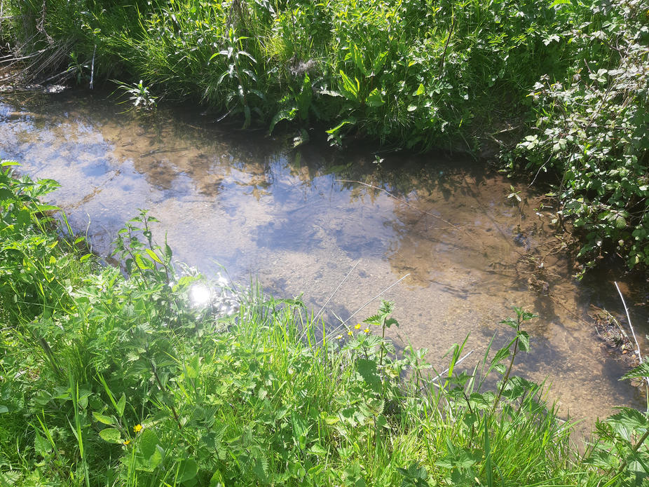 This little stream left the Windrush before the Dikler joined and runs alongside the main river you saw in the previous photo. Ok it is shallow but are you seeing any grey clodiness in the water or dark coating on the gravel bed? Food for thought and further investigation.