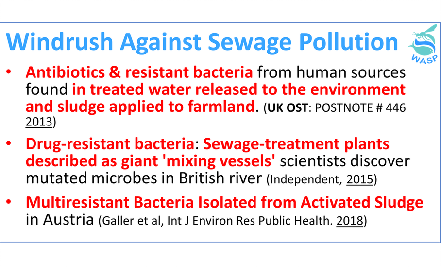 We will also be asking how the Water Industry and Environment Agency are addressing the threat from multi resistant bacteria developing in sewage treatment plants and rendering antibiotics ineffective. This is already being taken very seriously in Switzerland, Sweden and Germany, for example.